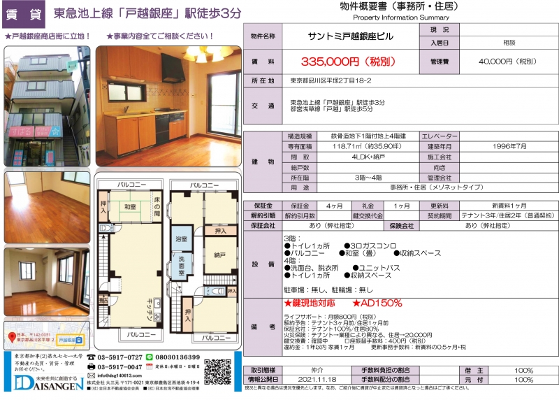 ★品川区-戸越銀座駅★サントミ戸越銀座ビル 3階~4階