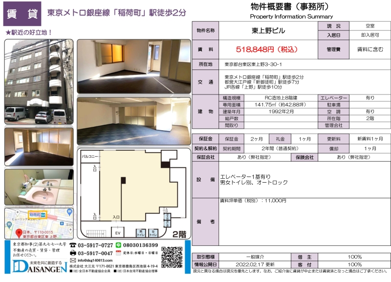 ★台東区-稲荷町駅★東上野ビル 2階 事務所